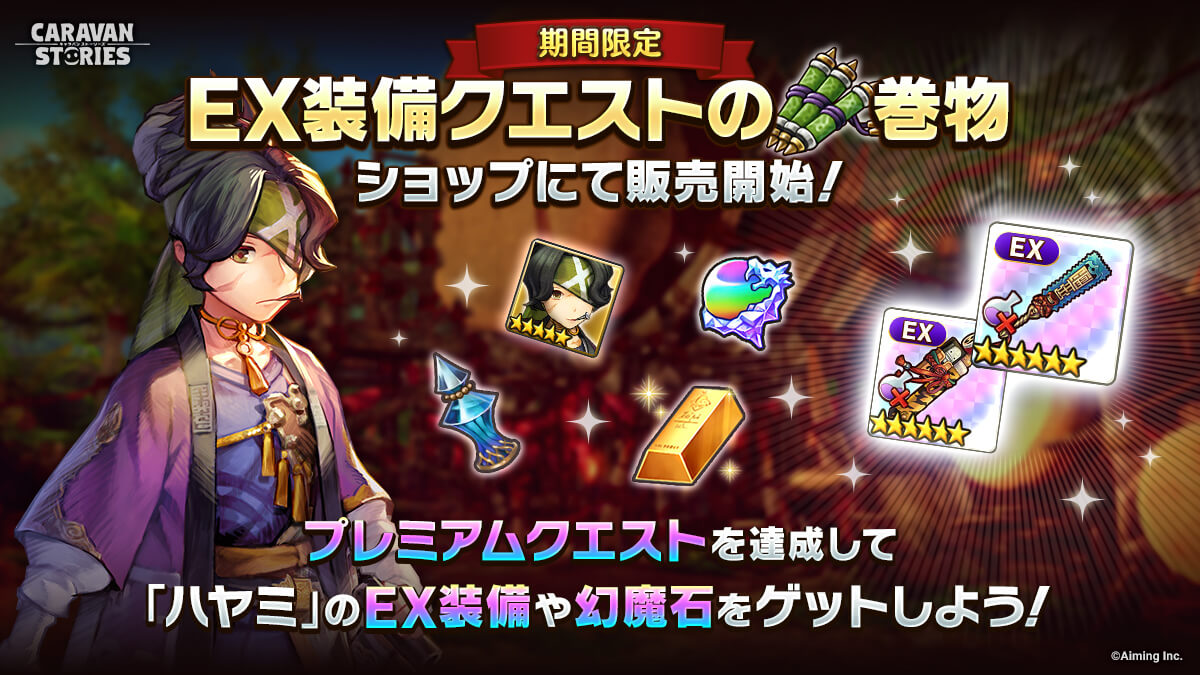 本パックに含まれるアイテムを使用後、専用のプレミアムクエストを全てクリアすることで、ハヤミのEX装備がゲットできます。