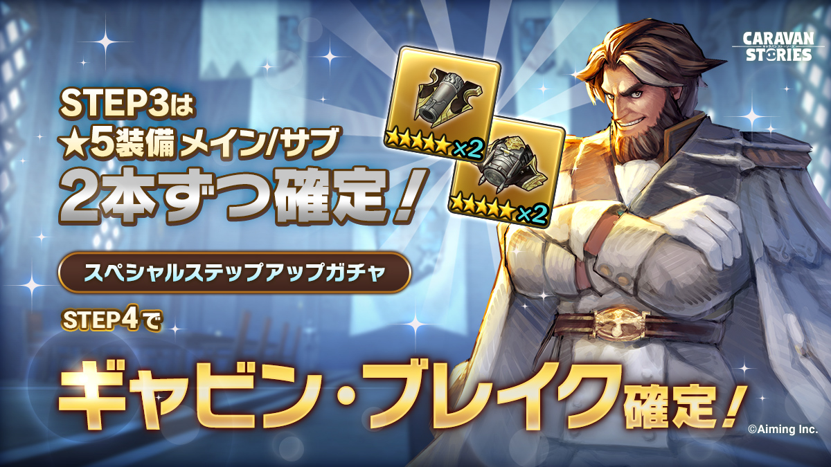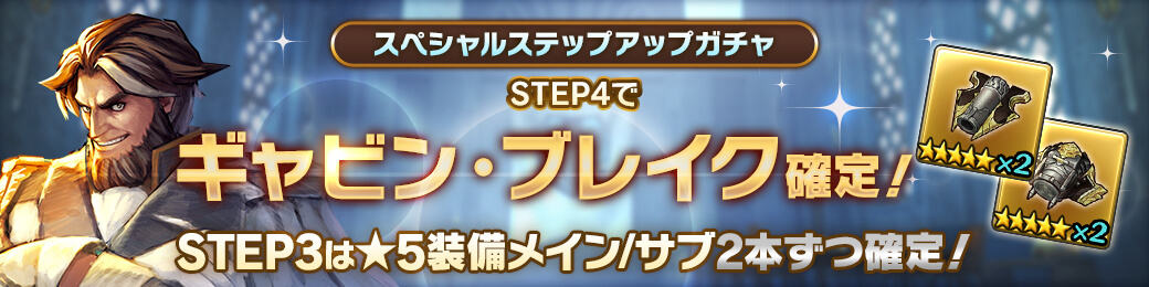 加えて、STEP3以降で「ギャビン・ブレイク(限定ヒーロー)」の★5メイン/サブ装備が出現する場合、必ず2本で出現いたします!